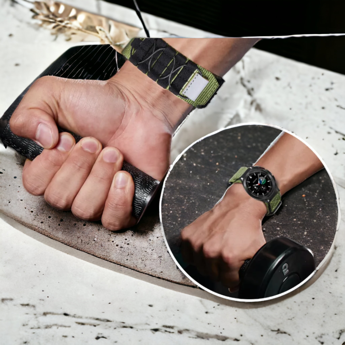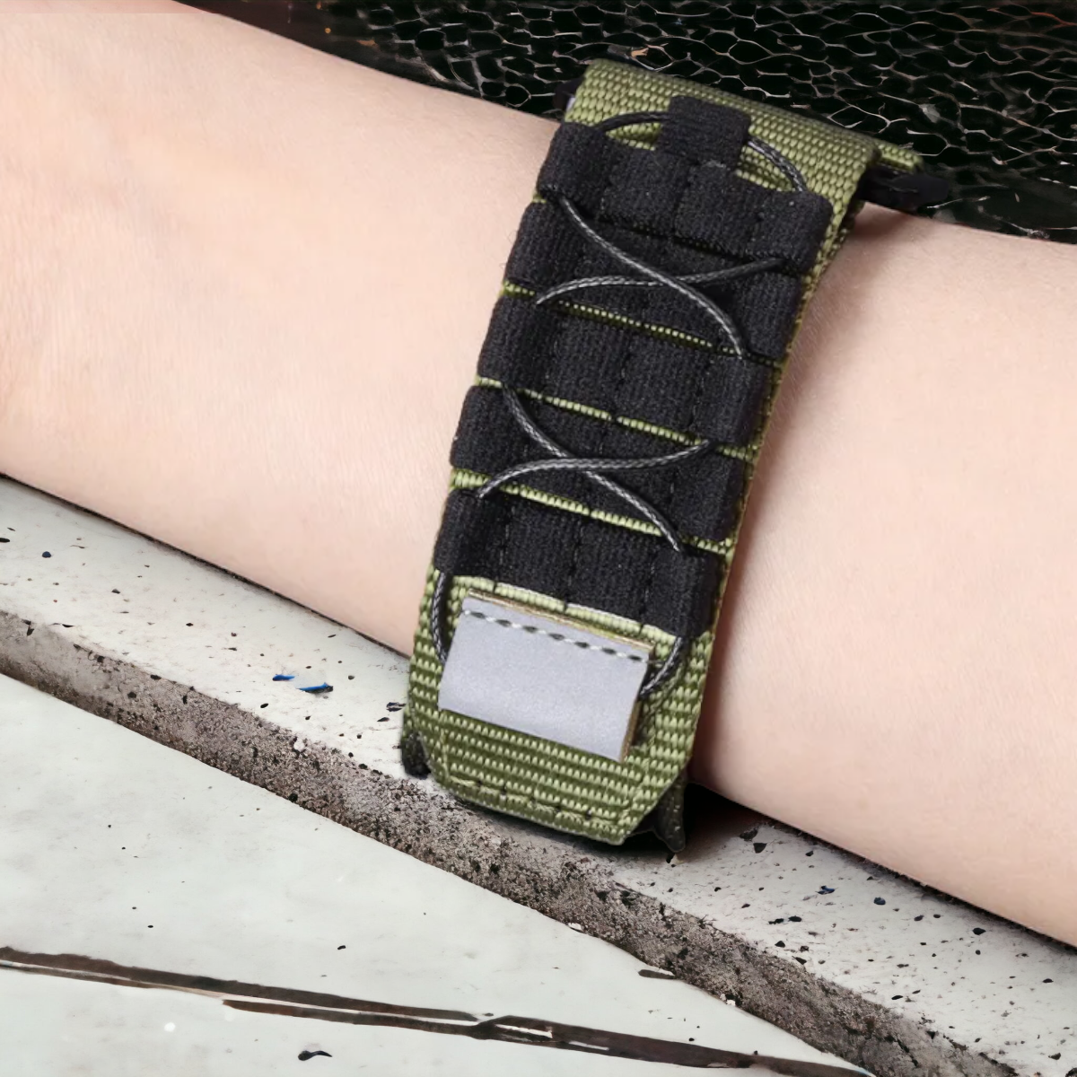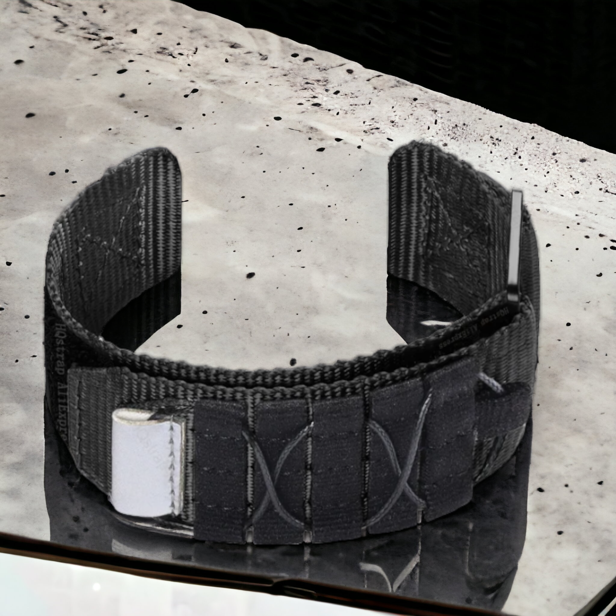 Miellyttävä ja korea Kellonranneke Kellonranneke cordny| musta, jossa on pitävä tarrasuljenta ja joka on musta mustalla. Tämä ranneke on loistavin valinta, kun etsit nykyaikaista, kevyttä ja samalla vahvaaranneketta kelloosi. Corduratyyppinen nailon kangas samalla pehmeää ja vahvaa, mikä tekee rannekkeesta samalla hengittävän sekä viileän tuntuisen. Saatavilla todella usealle urheilu-ja älykello merkkiin kuten tavallisiinkin rannekelloihin. Tämä ranneke on samalle kertaa vakuuttavan näköinen, hiukan korosteltu ja tukeva.