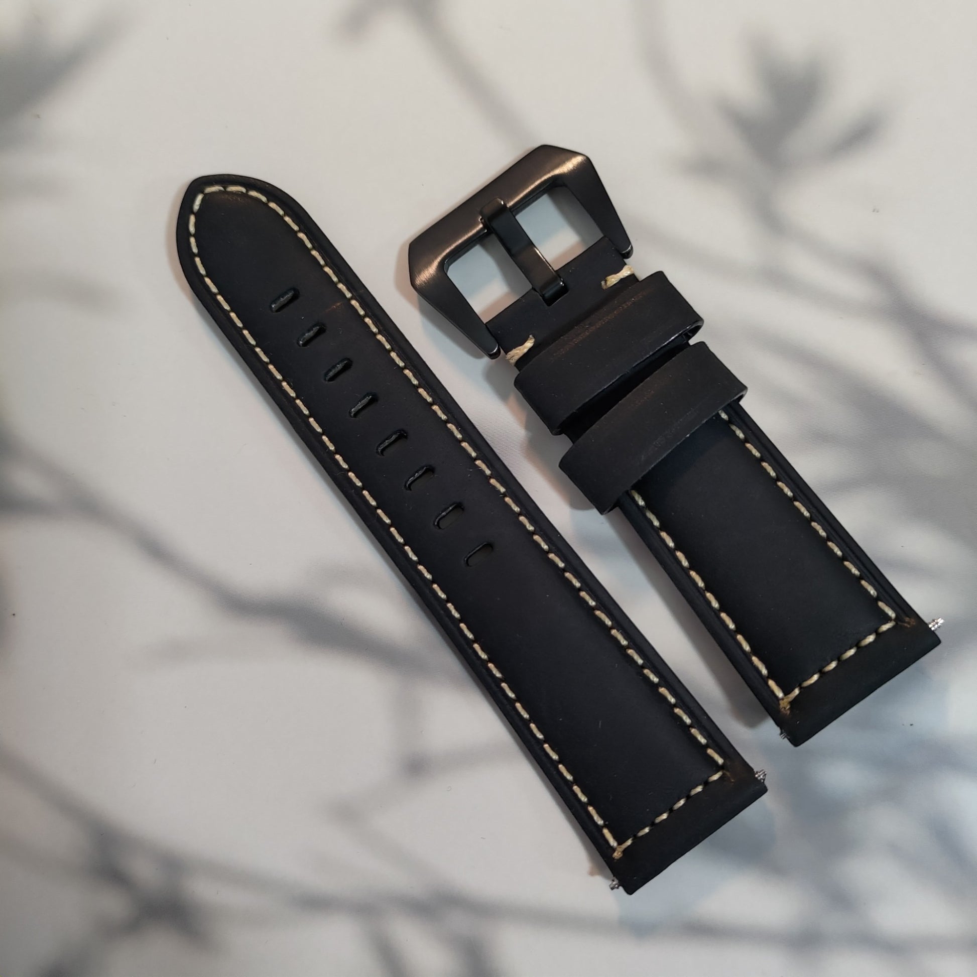Nahkaranneke SILO matta Crazy Horse | valkoinen tikkaus musta solki