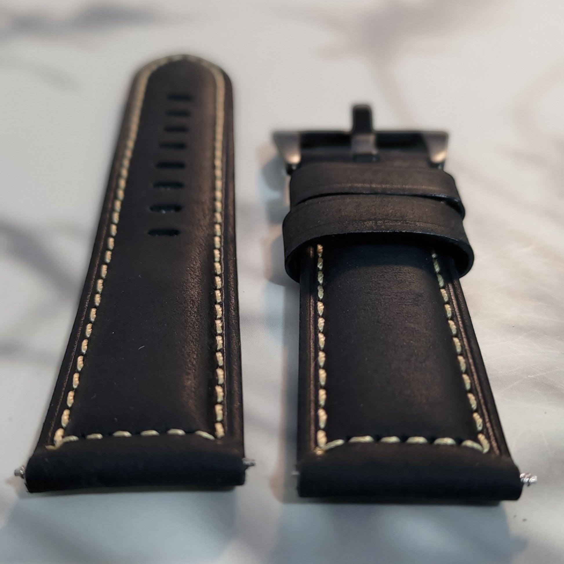 Mattapintainen musta solki viimeistelee rannekkeen ulkoasun, lisäten hienostuneisuutta ja modernia eleganssia. Tämä yksityiskohta tekee rannekkeesta sopivan moniin eri tilanteisiin, olipa kyseessä tavallinen työpäivä tai erityinen tilaisuus. Nahka ja solki yhdessä tarjoavat tyylikkään ja ajattoman ilmeen, joka kunnioittaa perinteitä, mutta myös täydentää modernia pukeutumista. Materiaalina Crazy Horse -nahka on tunnettu kestävyydestään ja kauniista patinastaan, mikä tekee siitä ihanteellisen päivittäiseen käyttöön, ja samalla se säilyttää eleganssinsa pidemmänkin ajan käytössä.