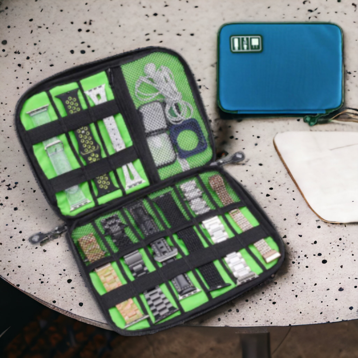 Rajoitettu erä: Tekstiilinen säilytyskotelo pienelektroniikalle ja rannekkeille.